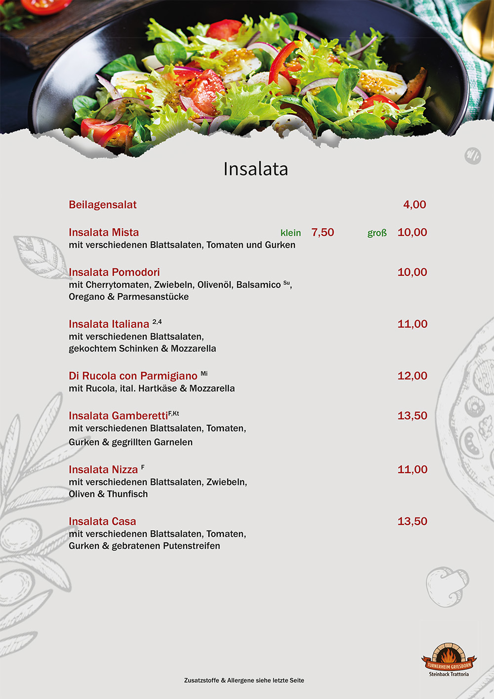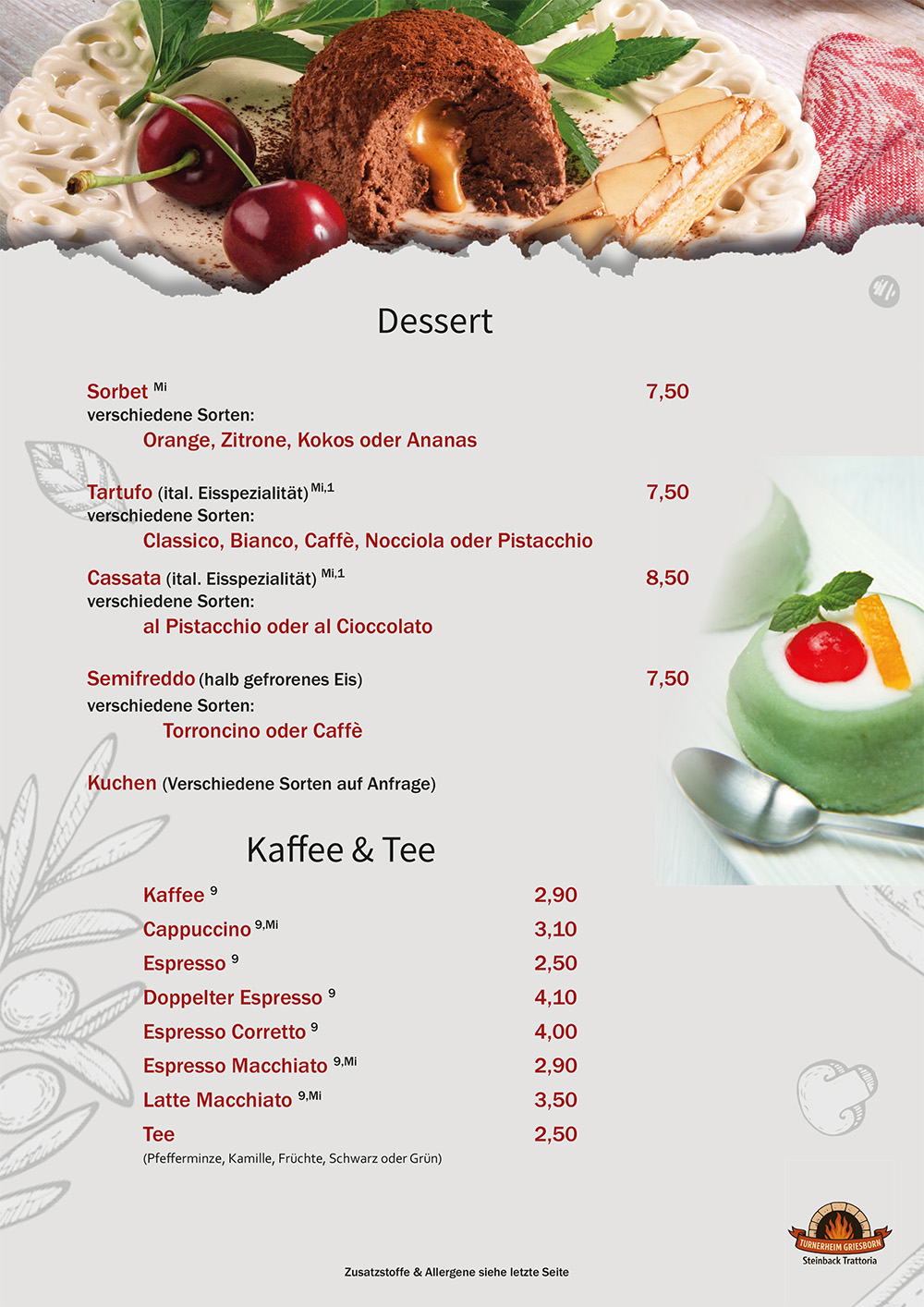• Speisekarte